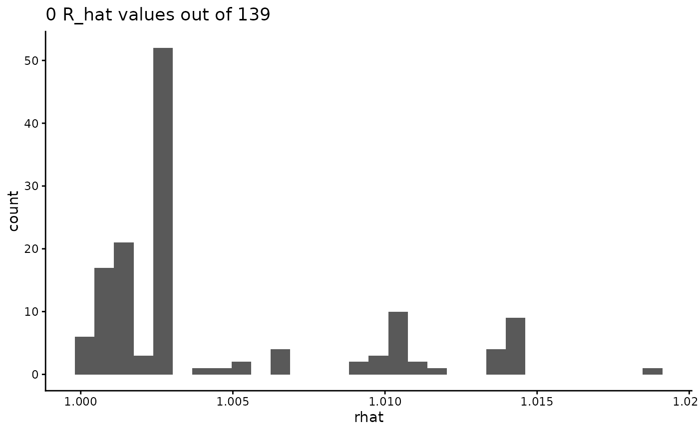 hmde_plot_Rhat_hist.RdPlot histogram of R_hat values for hmde_fit object.